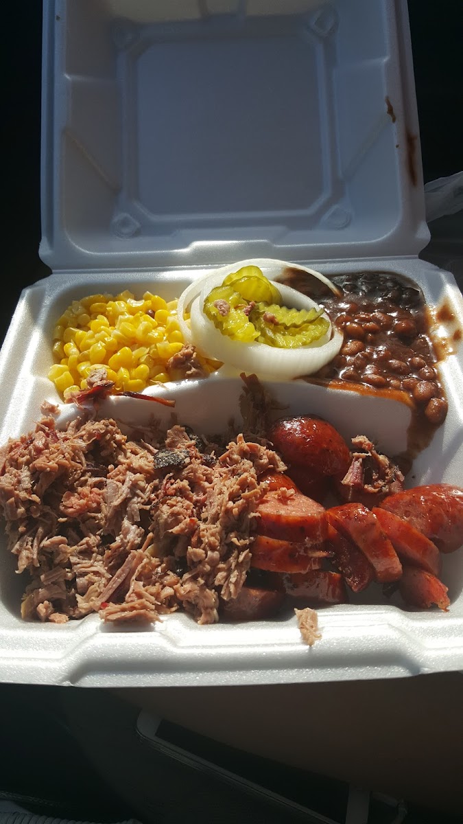 Really great restaurant. Barbecue was really good and brisket was awesome. Jalapeno cheddar sausage also awesome. Ranch style beans, black eyed peas and baked beans were very good. I thought the only negative would be very minor in the ribs there was a very little bit of char that was way too charred. Even though the meat did fall off the bone. Great food and service. I would definitely return here in the future.