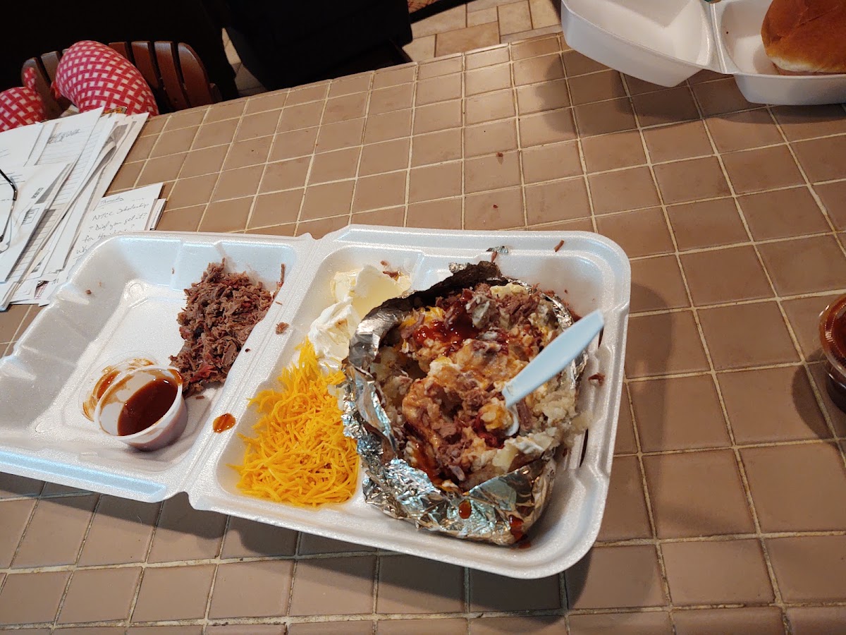 I love the BBQ here it's very good. Their loaded baked potatoes are amazing. The reason I gave it 4 starts and not a solid 5 is that their water and all their sodas taste like a lake. They need to seriously consider RO water filtration or something. I can't drink anything there and have brought my own drinks on more than one occasion.